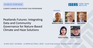 Helena Varkkey was invited to speak on ‘Knowledge Co-Creation with Peatland Communities for Improved Peatland Governance’ for a hybrid seminar organised by the Institute for Southeast Asian Studies (ISEAS).